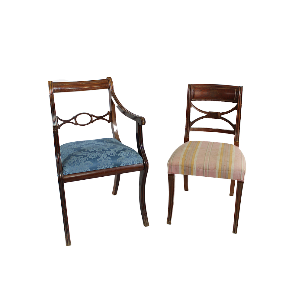 LOTTO DI 1 POLTRONA ED 1 SEDIA in legno di mogano con seduta imbottita Inghilterra XIX/XX secolo sedia h cm 85 x 43 x 47 - poltrona h cm 88 x 80 x 53
