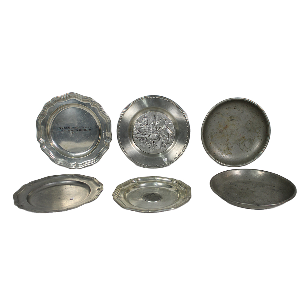 LOTTO DI 6 PIATTI in metalli diversi XX secolo misure varie