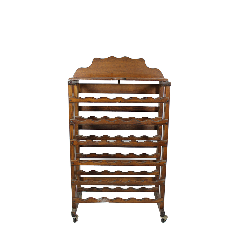 CANTINETTA PORTABOTTIGLIE in legno di rovere con rotelle , incollaggio XX secolo h cm 110 x 64 x 30