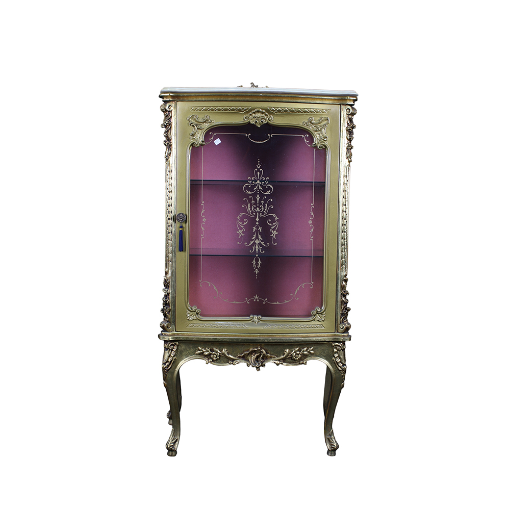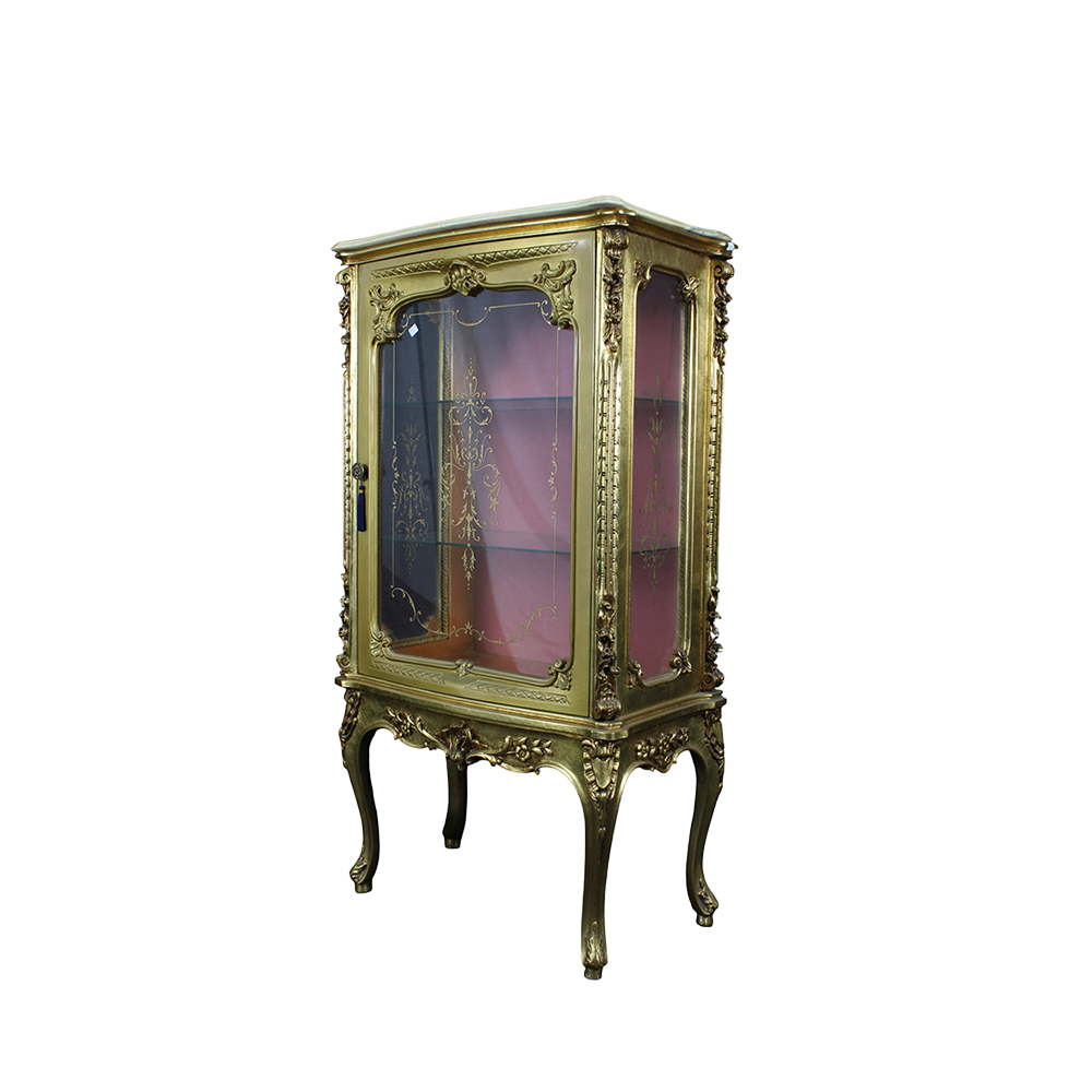 VETRINETTA BAROCCHETTA in legno dorato e vetri lumeggiati in oro, piano in onice Italia XX secolo h cm 150 x 75 x 45