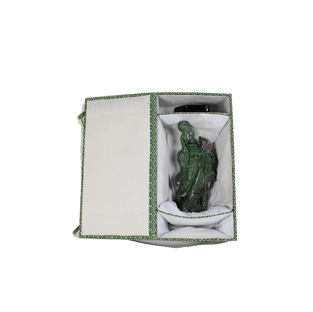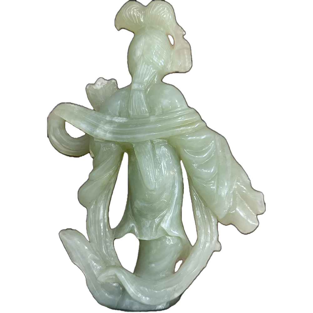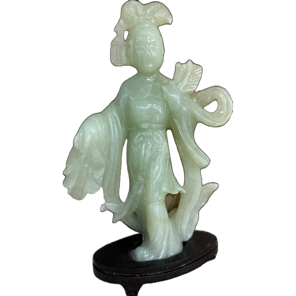 SCULTURA in giada verde raffigurante geisha con base in legno , rottura manifattura orientale XX secolo h cm 22 con la base