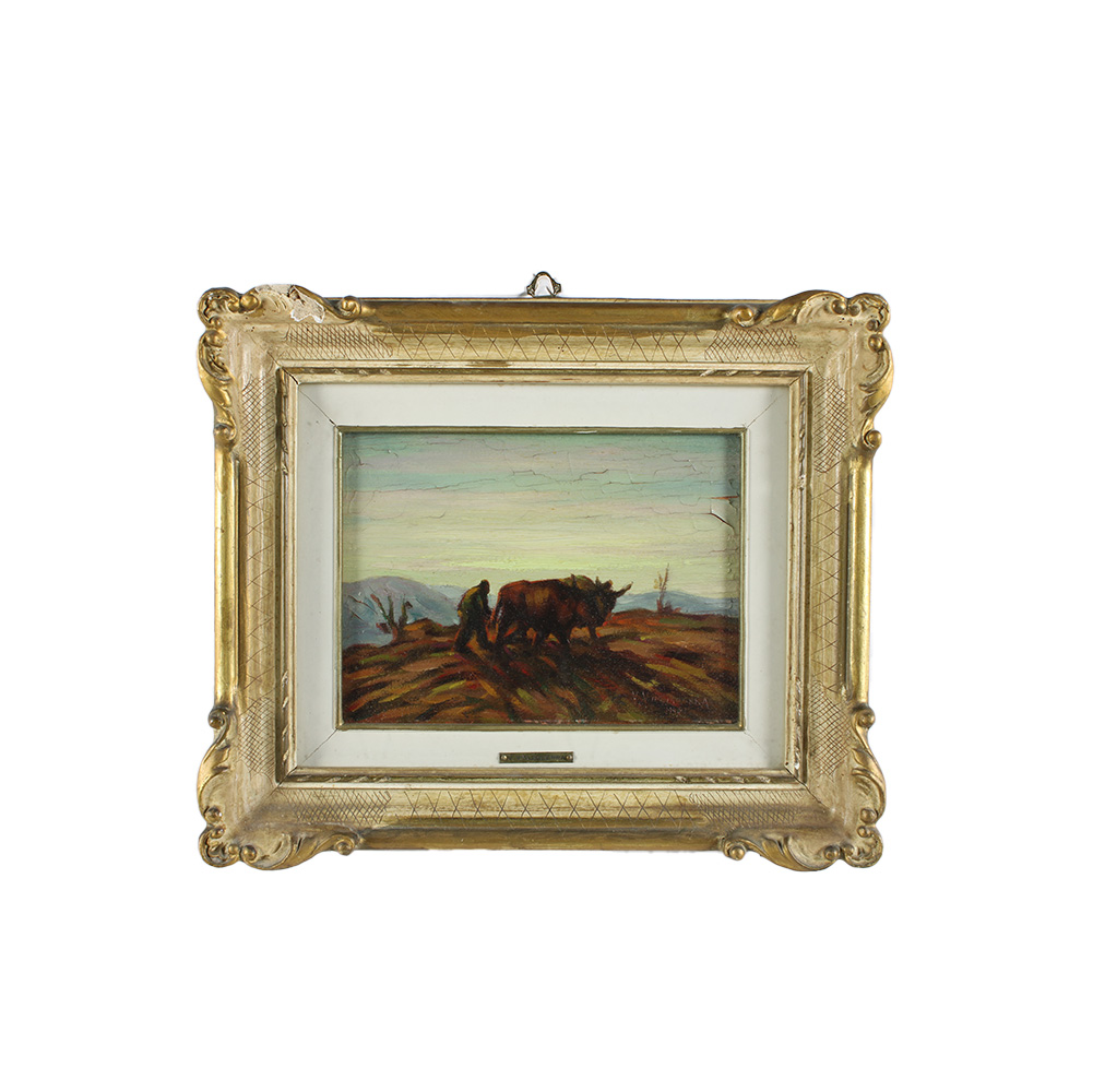 VINCENZO VINCIGUERRA scena bucolica olio su tavoletta h cm 18 x 23 - cornice h cm 32 x 39