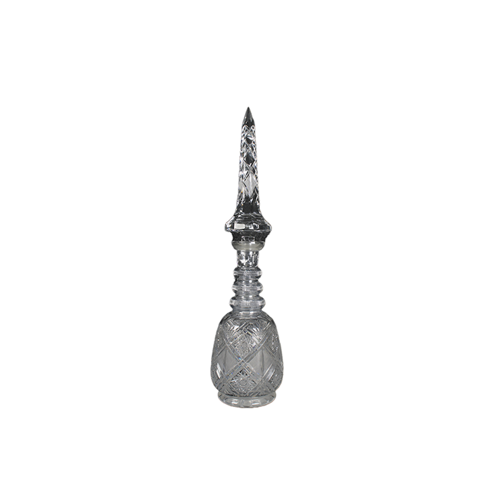 GRANDE BOTTIGLIA DECANTER in cristallo intagliato di gusto medio orientale probabilmente manifattura di Boemia primi 900 h cm 71 x 16