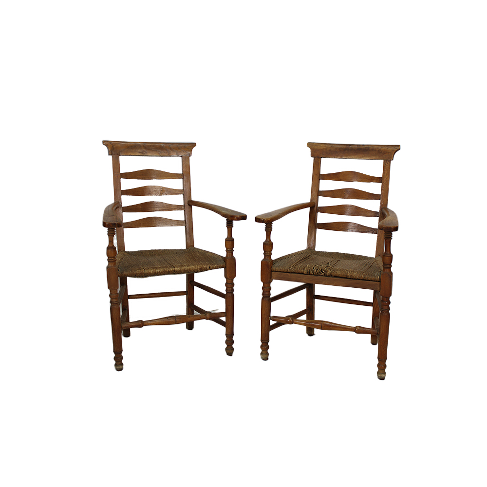 COPPIA POLTRONE in legno di castagno con seduta in paglia di Vienna Europa del Nord XIX secolo h cm 100 x 60 x 58