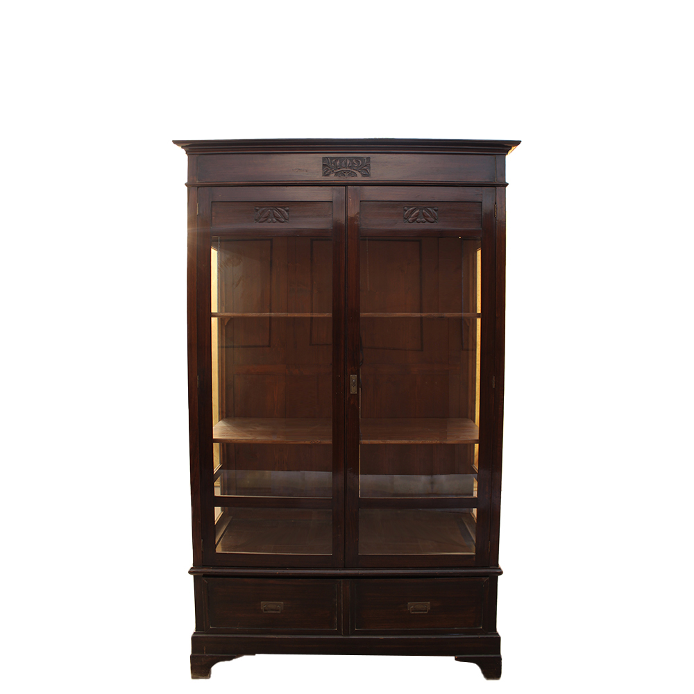 VETRINA in legno di noce a due ante e due cassetti nella parte inferiore, maestranze siciliane XIX secolo h cm 226 x 142 x 63
