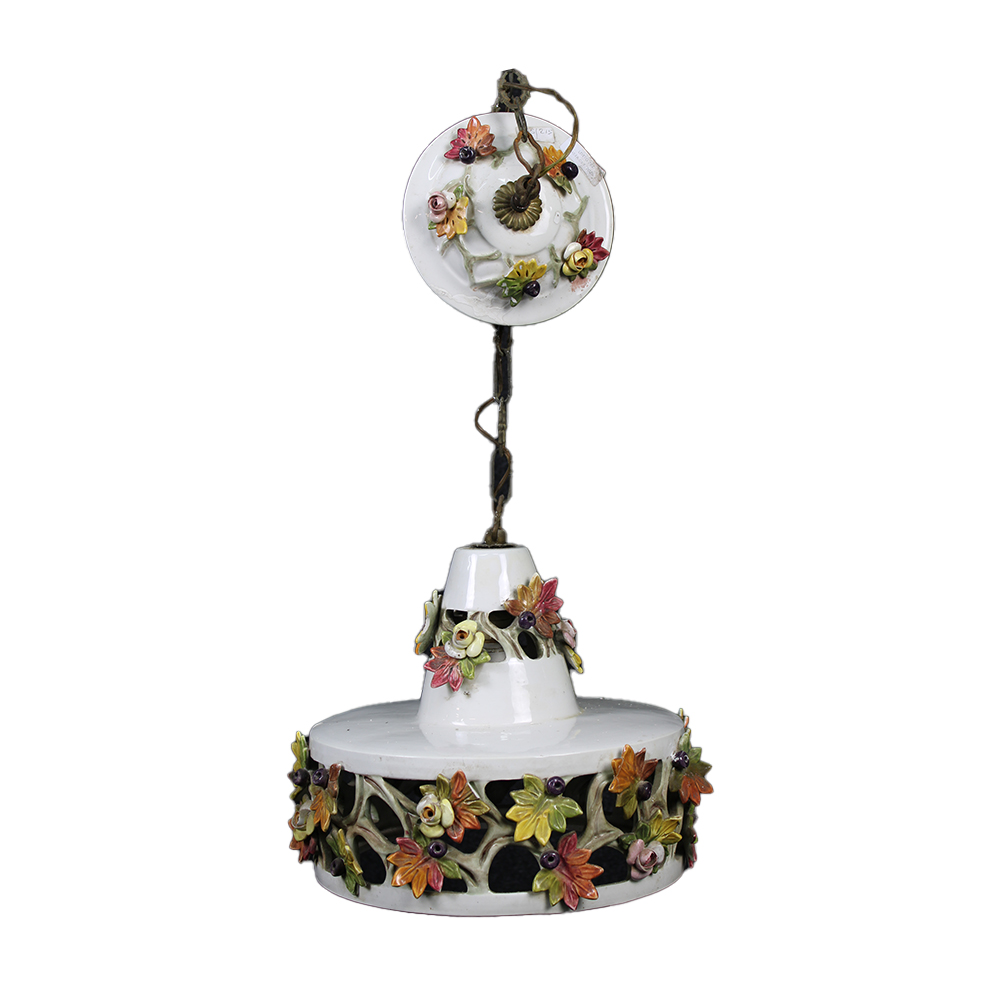 LAMPADARIO in porcellana decorato a motivi floreali maestranze siciliane XX secolo h cm 80 x 29 x 29