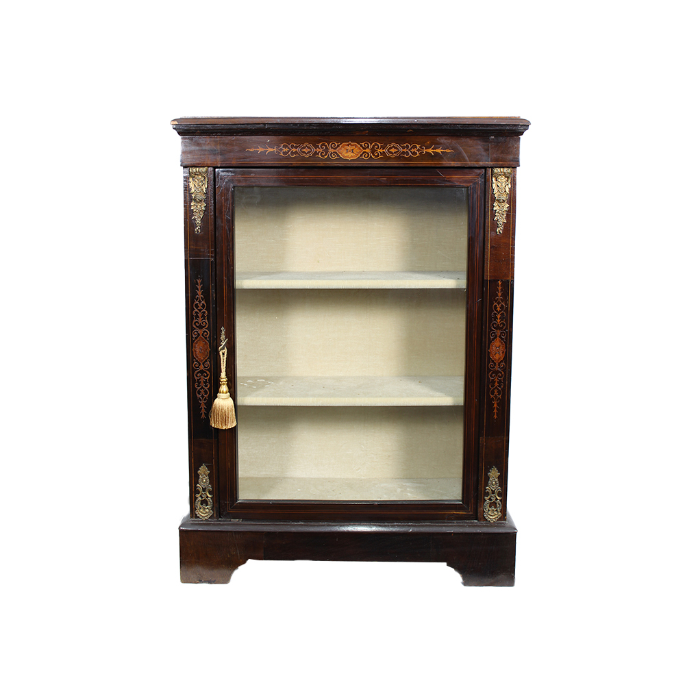 PICCOLA VETRINA AD UN ANTA in legno di mogano e tarsie in bosso con applicazioni in bronzo Inghilterra XIX secolo h cm 104 x 76 x 30
