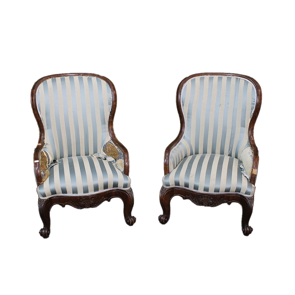 COPPIA POLTRONE LUIGI FILIPPO in legno di piuma di mogano, seduta e spalliera imbottita Sicilia XIX secolo h cm 100 x 63 x 70