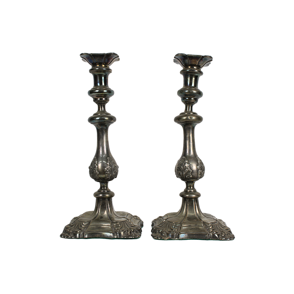 COPPIA DI CANDELABRI MONOCERA in metallo sbalzato cesellato e argentato Italia XIX secolo h cm 31 x 14 x 14