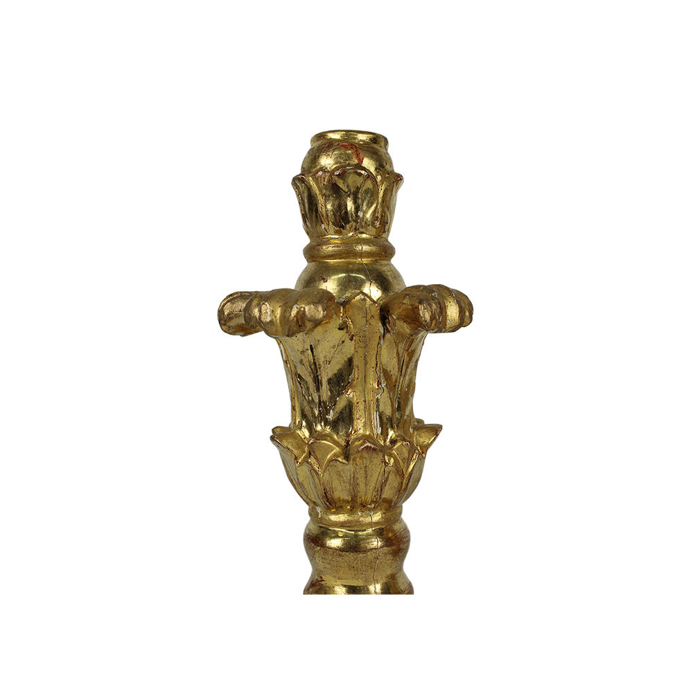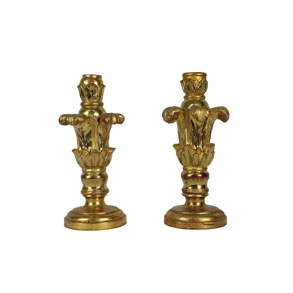COPPIA DI ELEGANTI PORTA CANDELA MONOCERA in legno finemente scolpiti e dorati ad oro zecchino Roma XIX secolo h cm 27 x 11