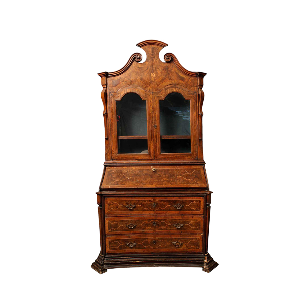 IMPORTANTE TRUMEAU in legno di noce e perfilato in bosso e legno ebanizzato arricchito da serramenti in ottono patinato maestranze siracusane XVIII secolo h cm 260 x 148 x 73