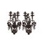 COPPIA APPLIQUES A 2 FIAMME in ferro battuto a motivi floreali Sicilia vecchia fattura h cm 50 x 32 x 14