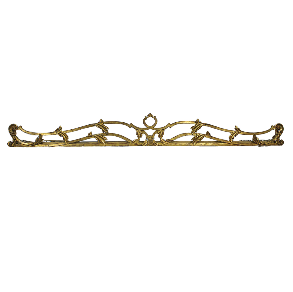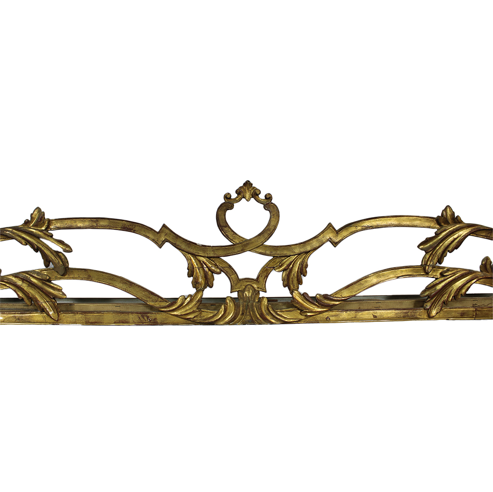 IMPORTANTE ZINEFFA LUIGI XV in legno finemente scolpito a motivi fogliacei e dorato ad oro zecchino usure del tempo e mancanze Venezia XVIII secolo cm 279 x 21