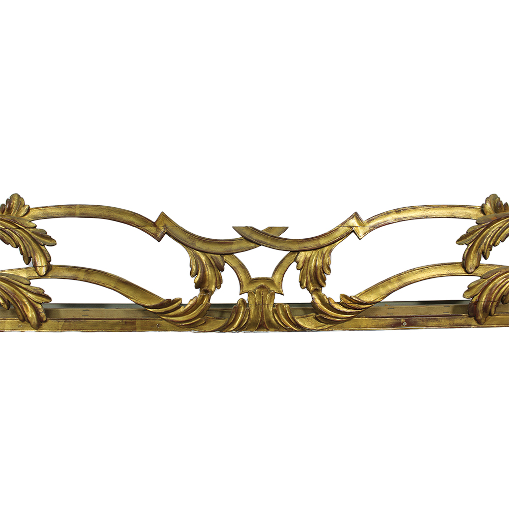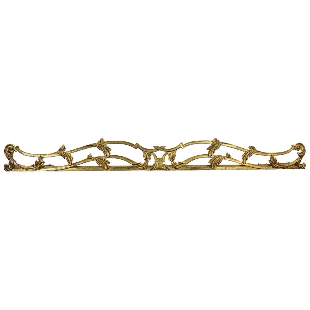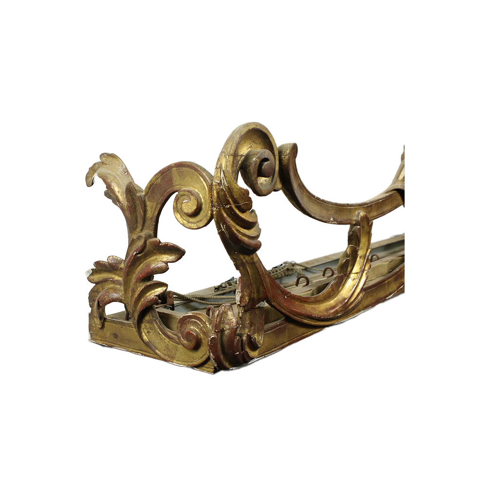 IMPORTANTE ZINEFFA LUIGI XV in legno finemente scolpito a motivi fogliacei e dorato ad oro zecchino usure del tempo e mancanze Venezia XVIII secolo h cm 260 x 18