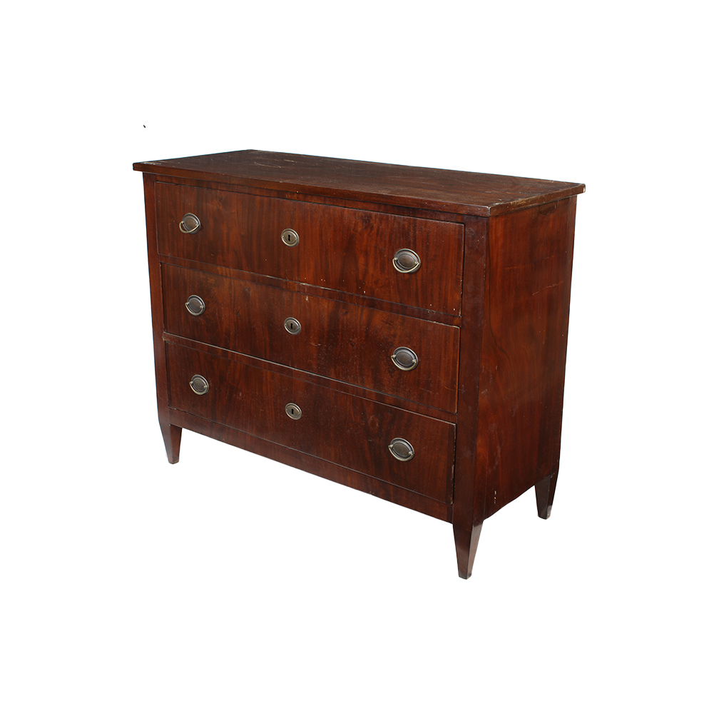 CASSETTONE DI GUSTO LUIGI XVI in legno di mogano a 3 cassetti Inghilterra primi 800 h cm 102 x 127 x 52