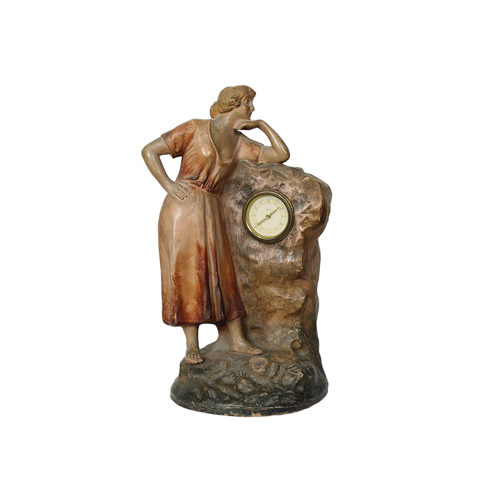 OROLOGIO in terracotta policroma raffigurante figura femminile Francia primi 900 h cm 37 x 18