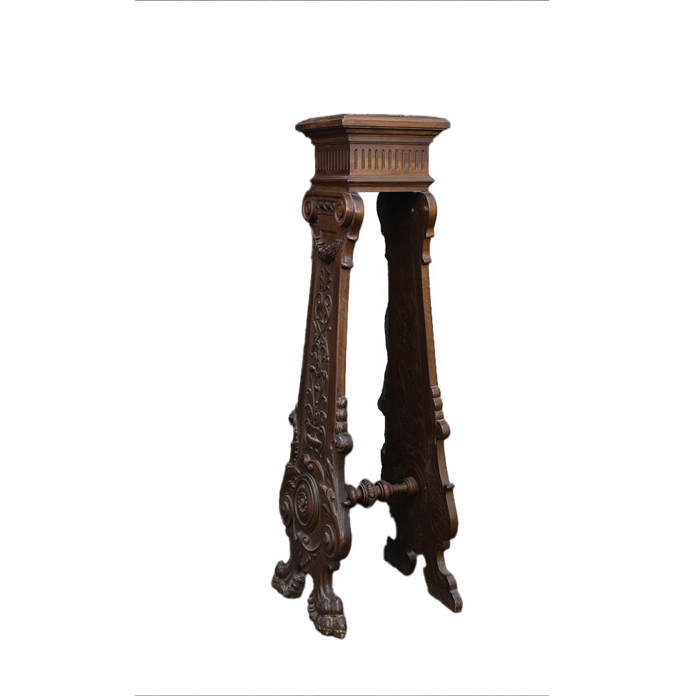CANTONE DI GUSTO RINASCIMENTALE in legno di noce riccamente scolpito Sicilia XIX secolo h cm 142 x 43 x 38