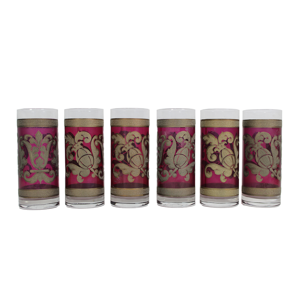LOTTO DI 6 BICCHIERI in vetro, lumeggiature in oro Venezia XX secolo h cm 15 x Ø 4
