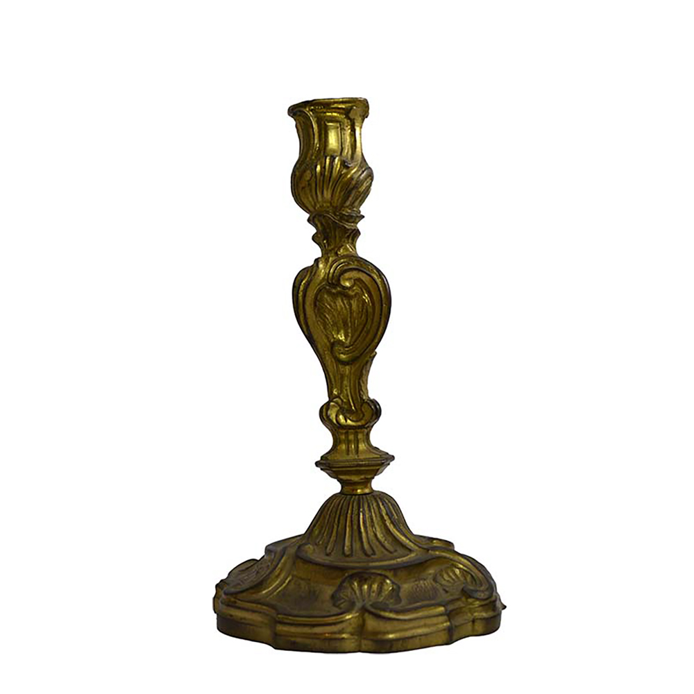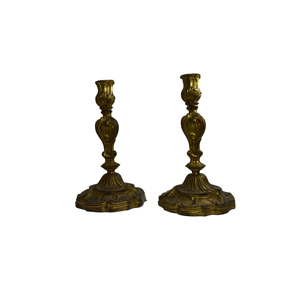 COPPIA CANDELIERI MONOCERA in bronzo finemente cesellato e dorato Francia XIX secolo h cm 24 x 14