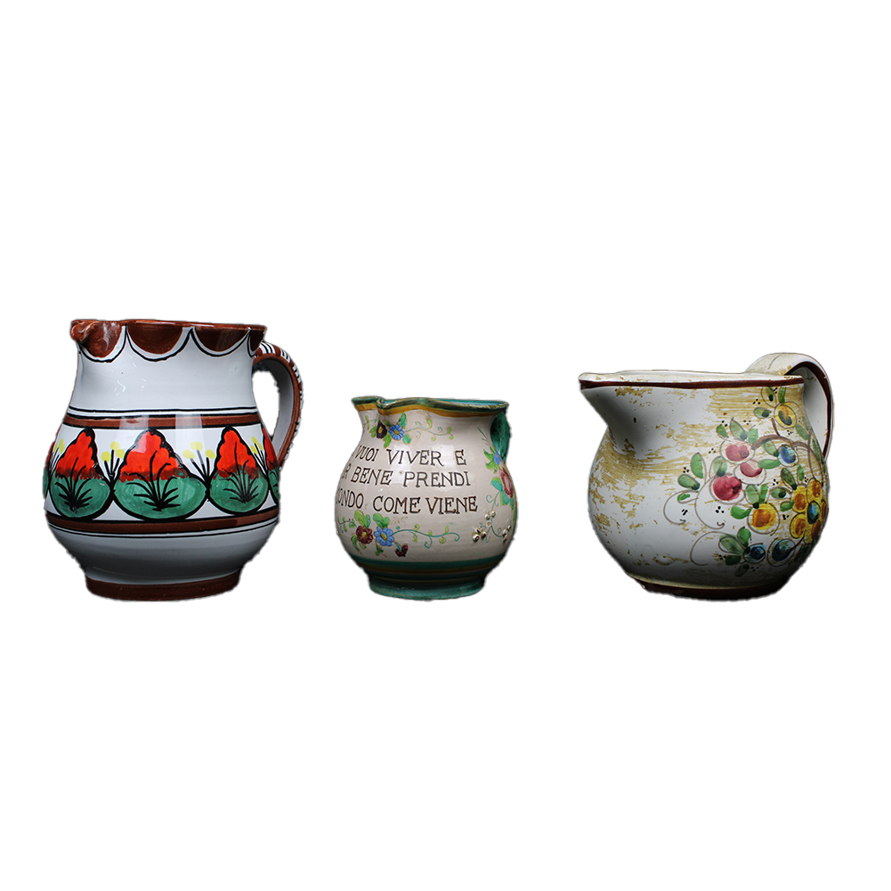 LOTTO DI 3 BROCCHE in ceramica policroma diverse manifatture Italia primi 900 misure varie