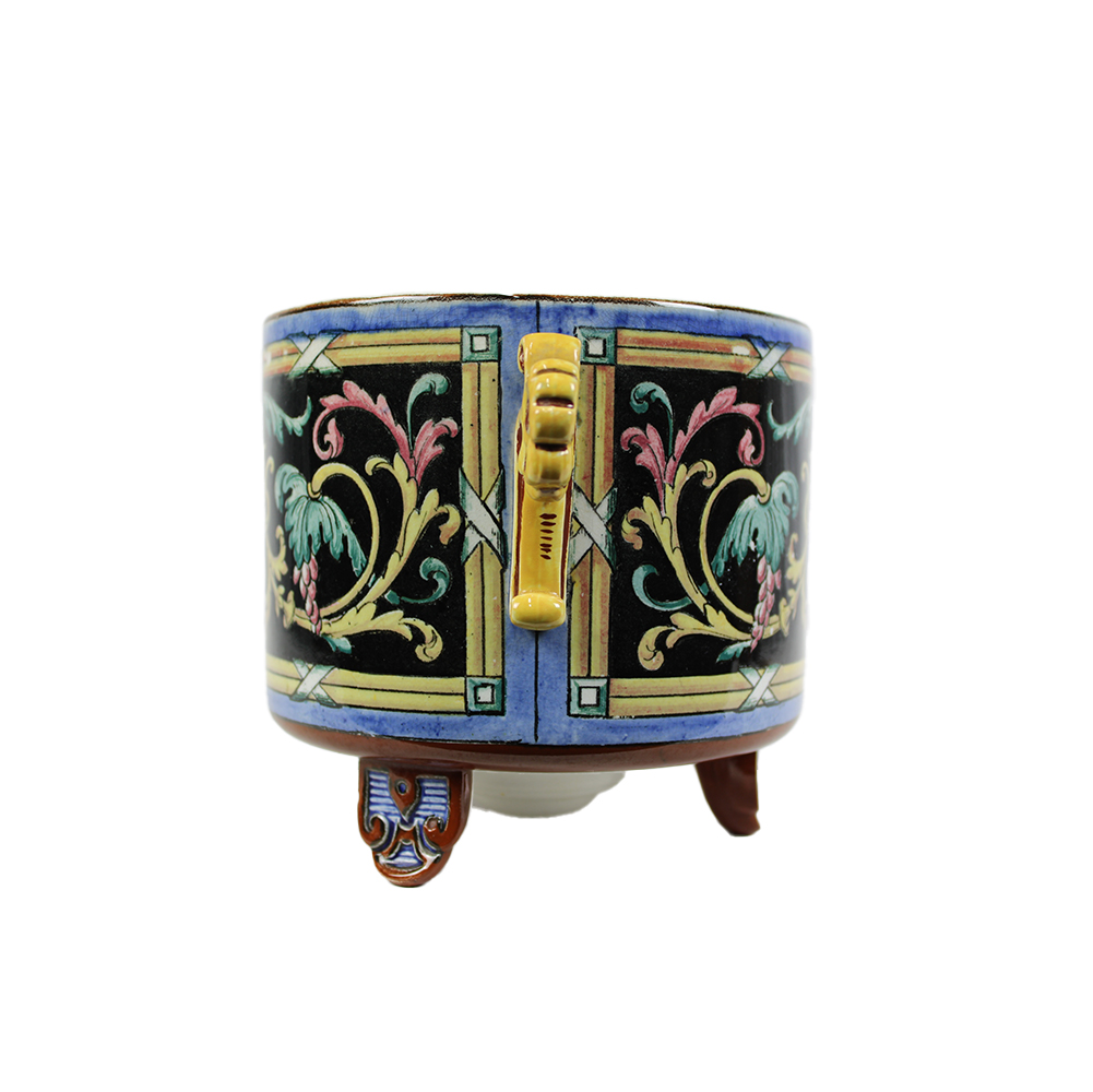 PICCOLO CACHEPOT in ceramica decorata a motivi grotteschi manifattura inglese primi 900 h cm 14 x 17