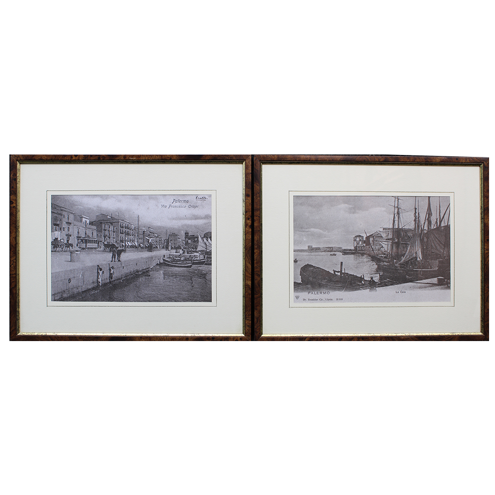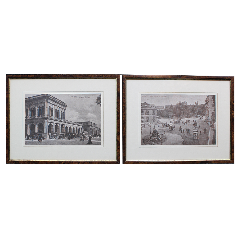 CINQUE STAMPE D'EPOCA dentro cornice in legno raffiguranti vedute di Palermo prima metà del 900 h cm 34 x 44 - cornice h cm 36 x 46