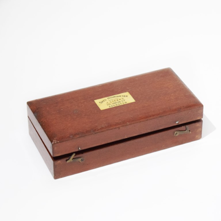 A Sikes hydrometer set manufactured by J. Lizars in Aberdeen, in its original mahogany case in excellent condition.