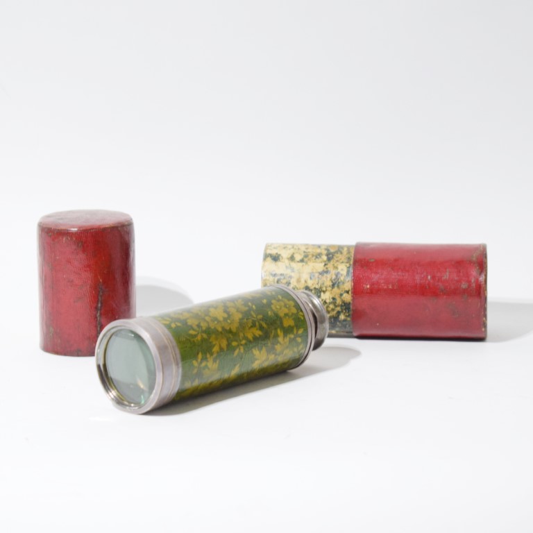 A very fine and rare silver spyglass in eight telescopic sections and Vernis Martin finish in its original red Morocco leather box.