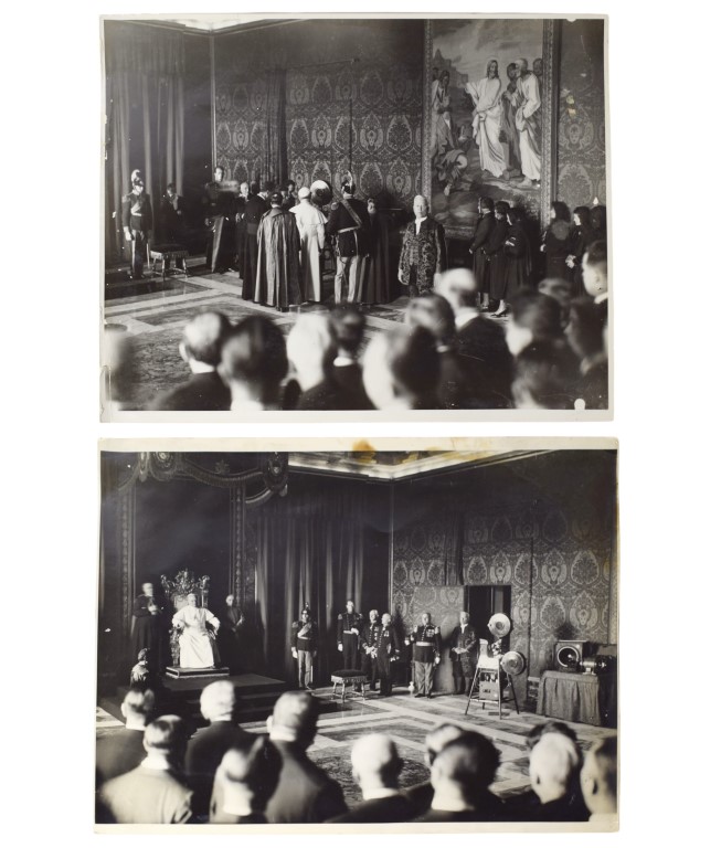 A pair of rare original photographs capturing Pope Pius XI during a solemn ceremony held at the Vatican in 1933.