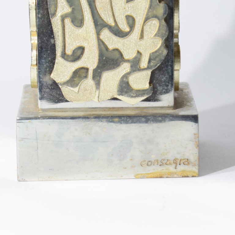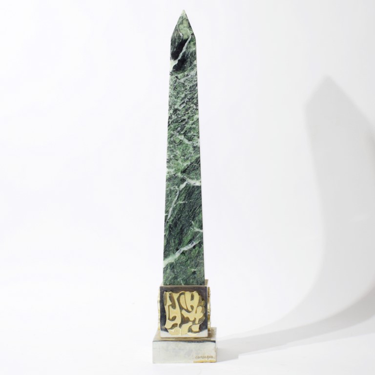 Green marble obelisk on chromed base with engraved signature of Consagra and edition 8/36.
