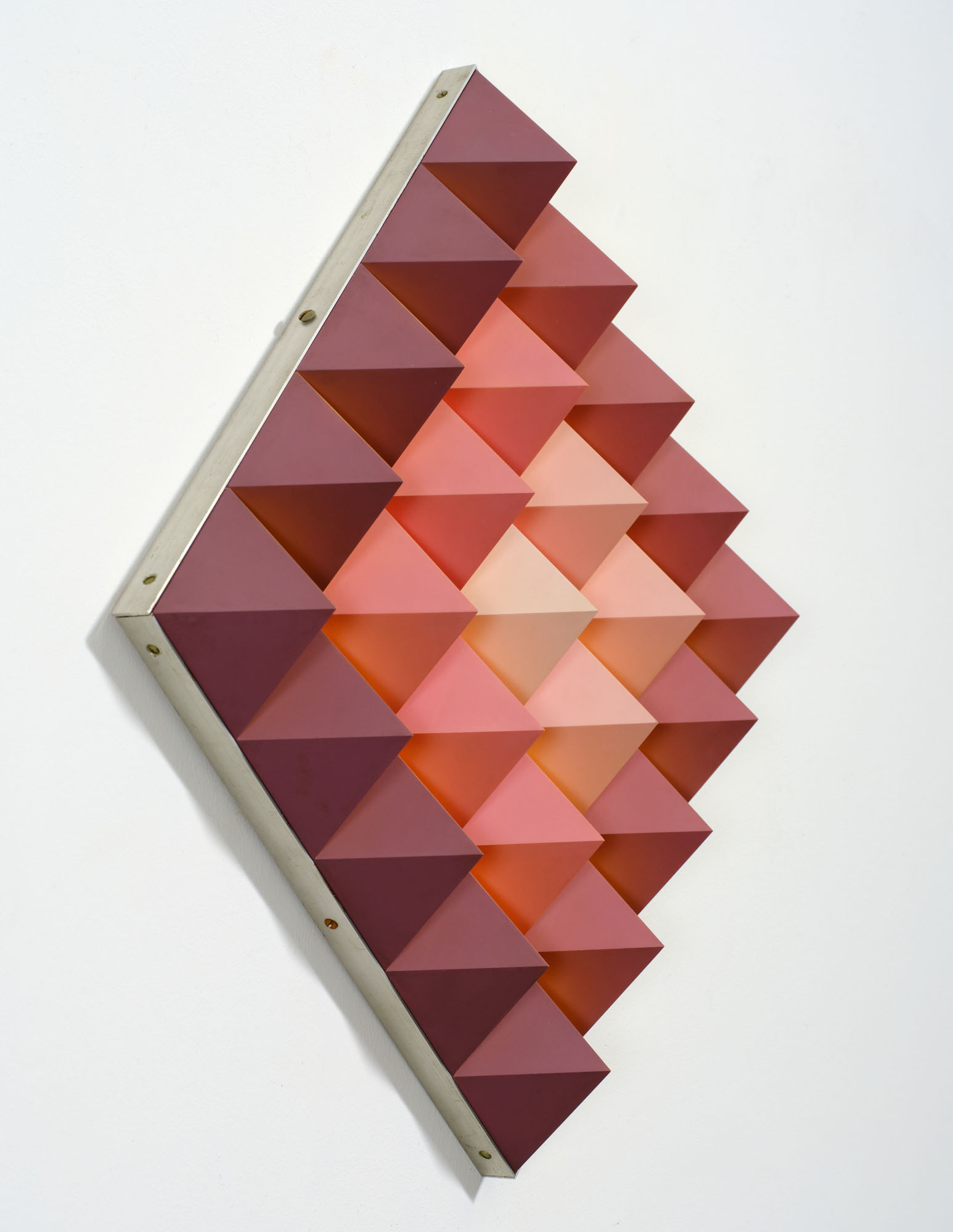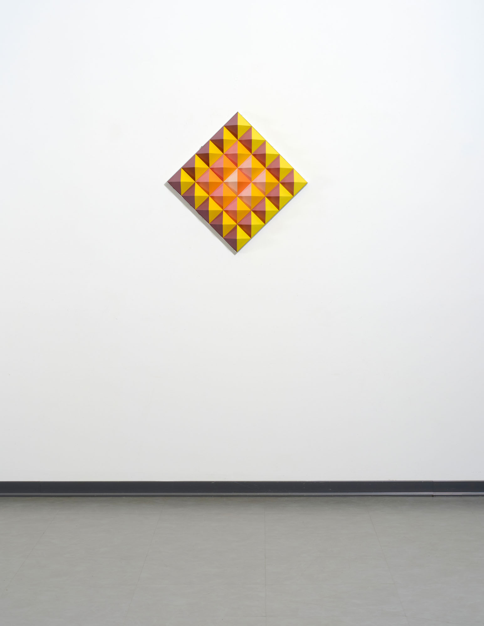 Rilievi con piramidi, acrilico su polistirene, cm 70,5 x 70,5 (lato cm 50 x 50)