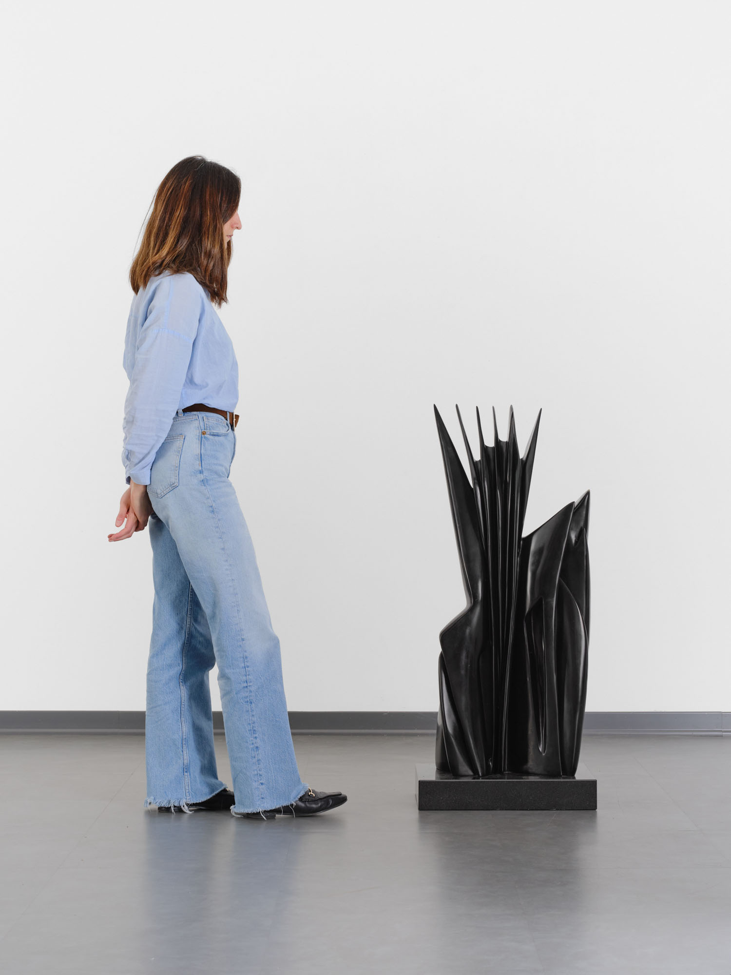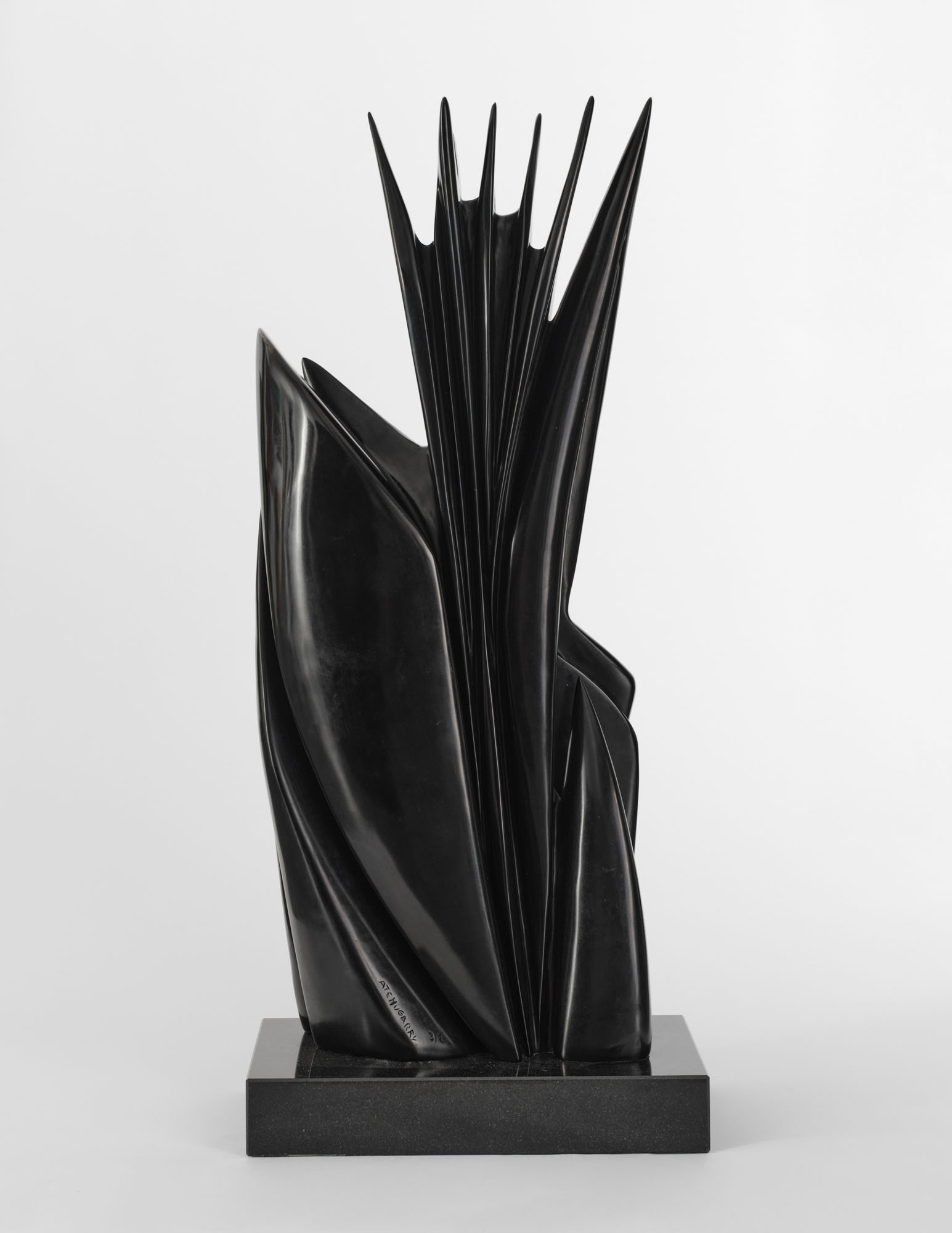 Scultura in bronzo patinato nero, base in granito, cm 98 x 37 x 20 - con base h cm 106