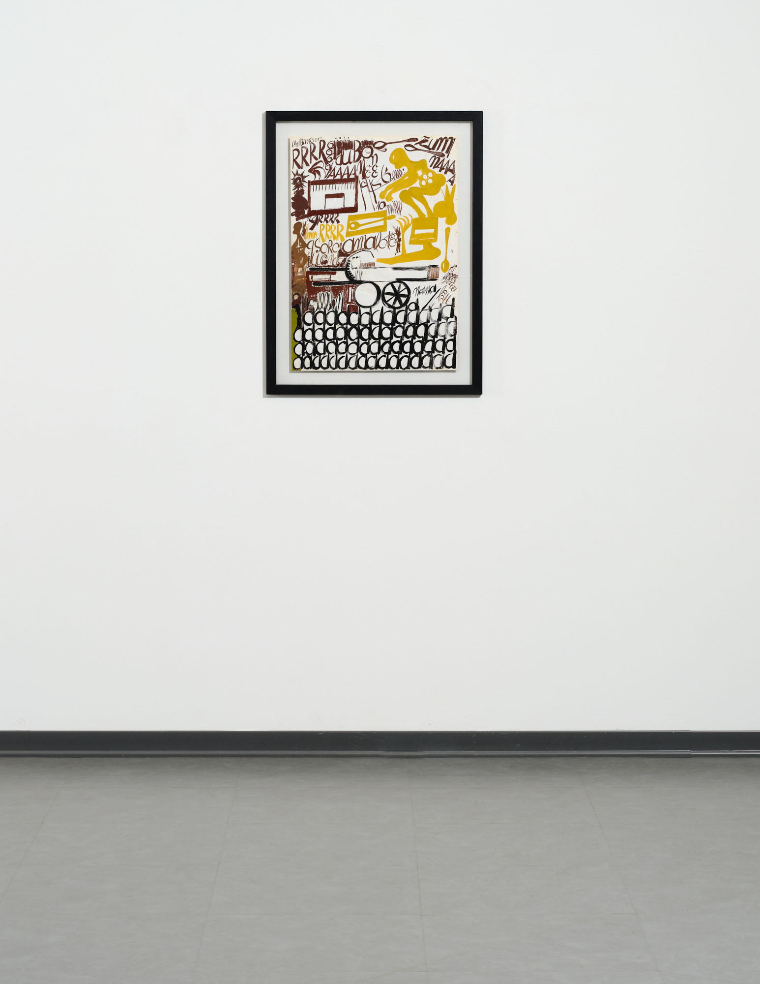 Grande croce dentata e figure brune - Figura gialla piegata in avanti, forme e figure, 1966