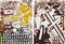 CARLO ZINELLI Grande croce dentata e figure brune - Figura gialla piegata in avanti, forme e figure, 1966