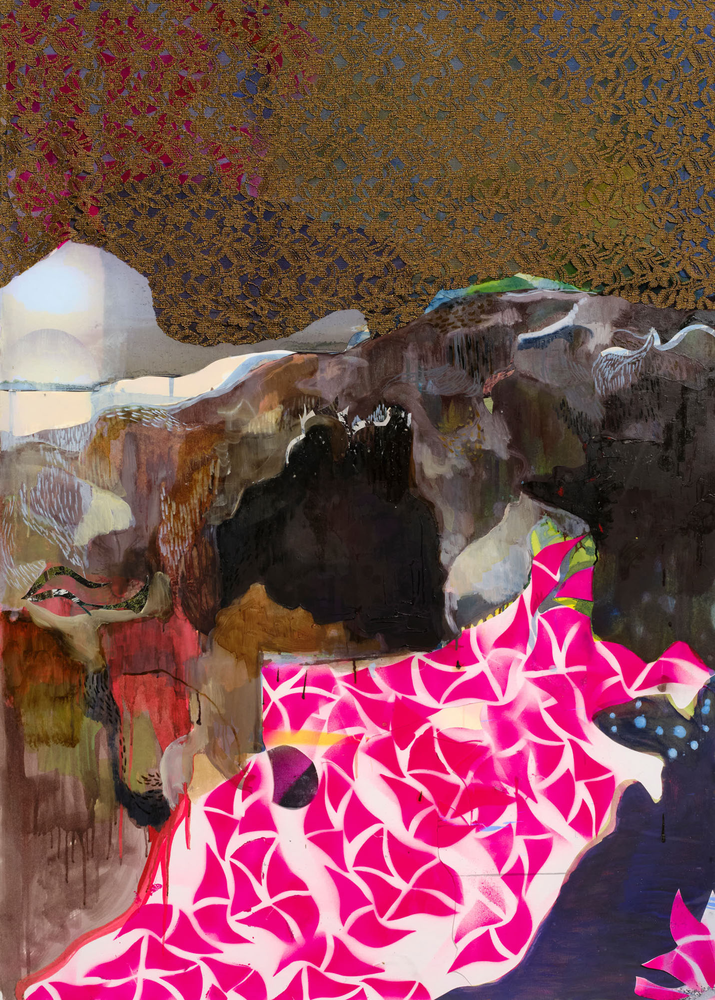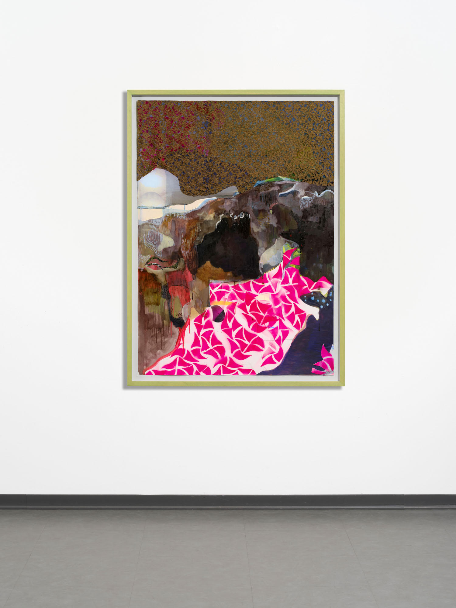 Tessuto, collage, olio e smalto su carta, cm 140 x 100