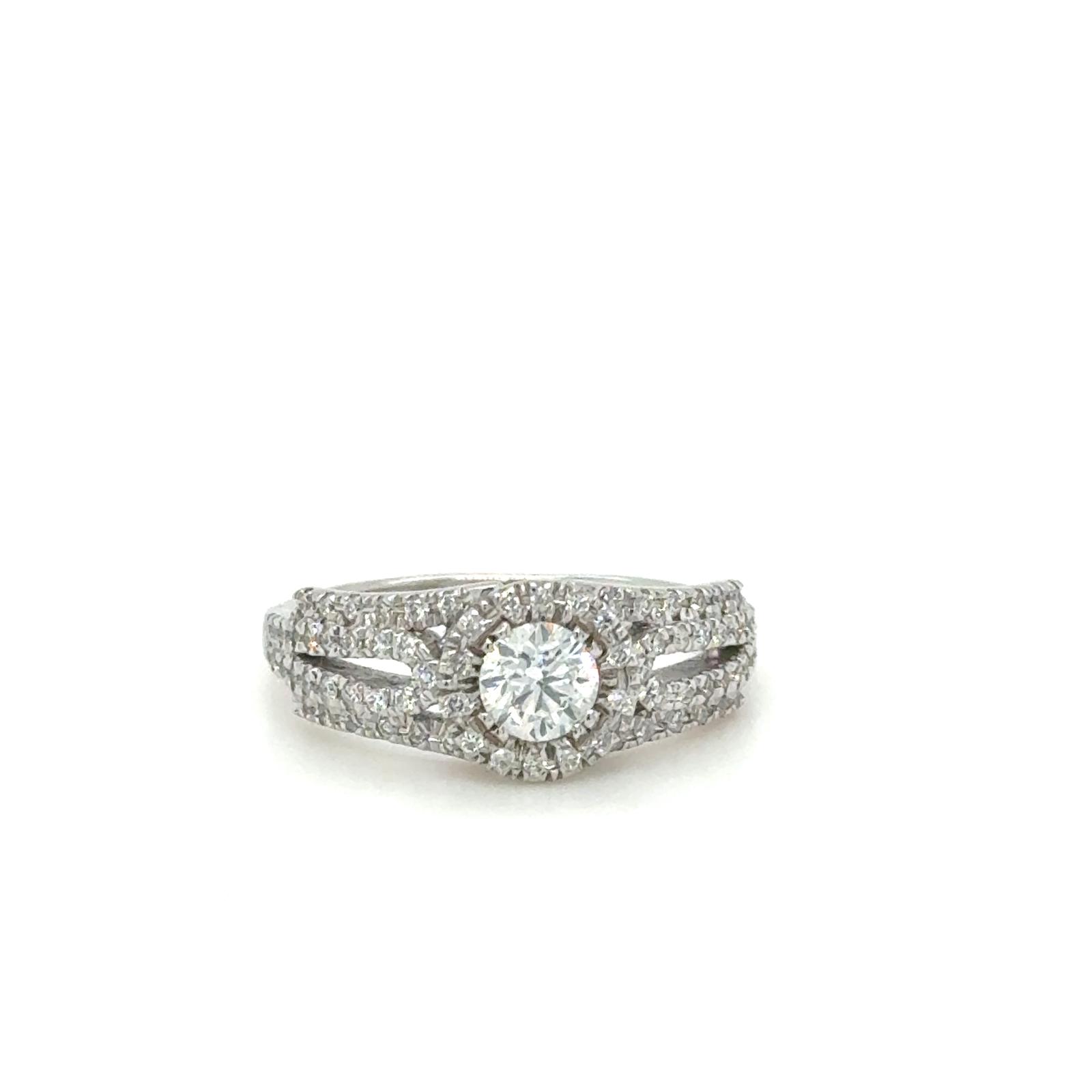 ANELLO IN ORO BIANCO 14k - 3.87 GR CON DIAMANTI: PEITRA CENTRALE BRILLANTE COLORE F VS 1-0.50 CT + BRILLANTI LATERALI D-F VVS-VS 0.91 CT TAGLIA: 8 CERTIFICATO LD GR - DH-R700 - DH-R700 - COMMISSIONE D’ASTA 25%
