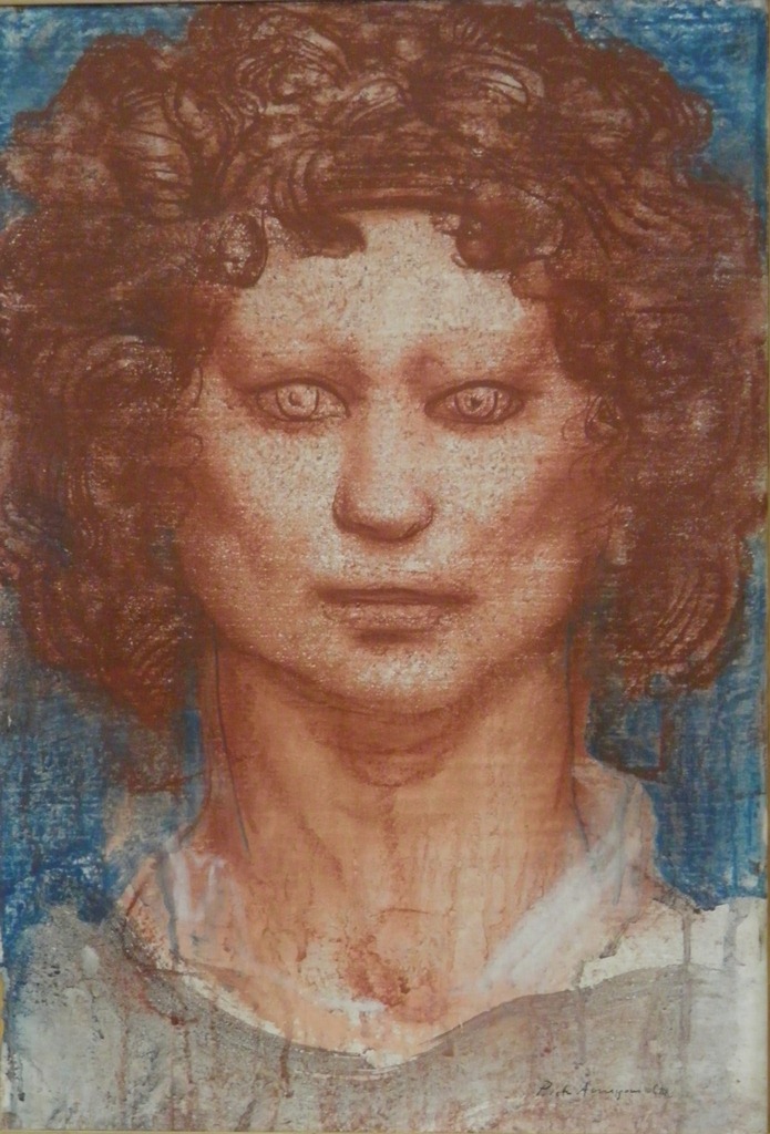 ANNIGONI PIETRO MILANO 1910 FIRENZE 1988 STUDIO DI TESTA DI DONNA, 1950 SANGUIGNA SU CARTONCINO cm 60 x 40 Firma in basso a destra Autentica del Maestro su fotografia