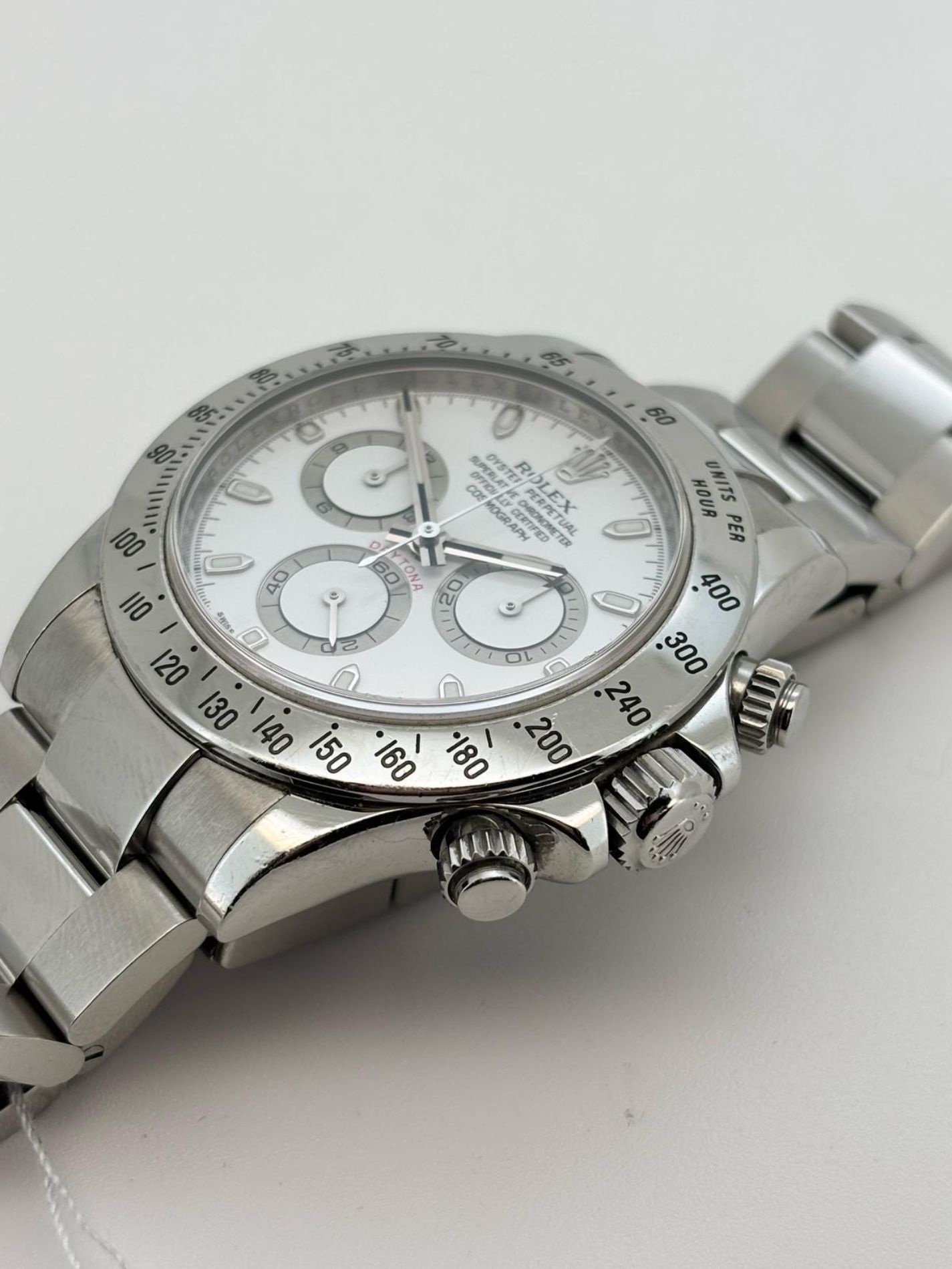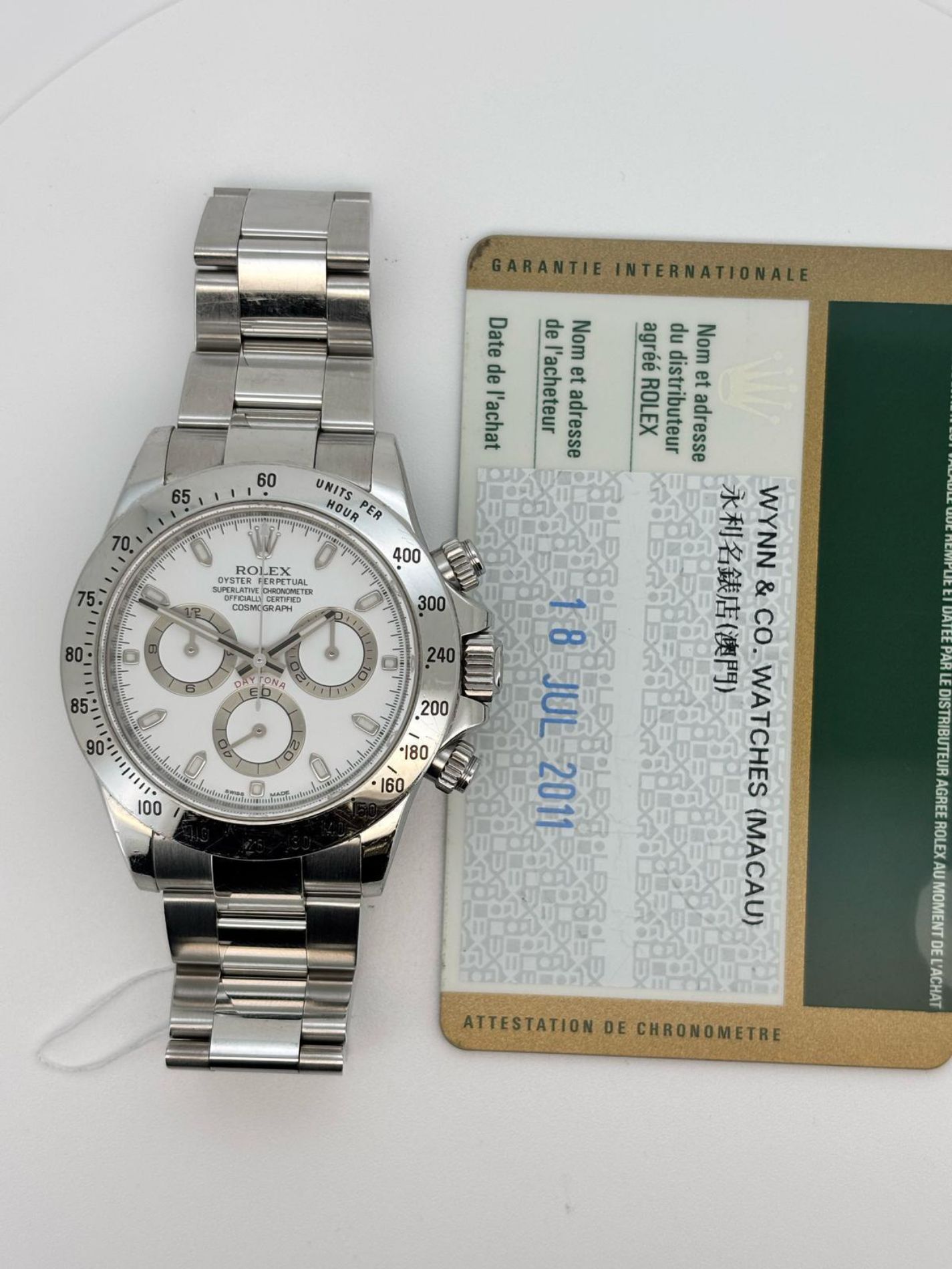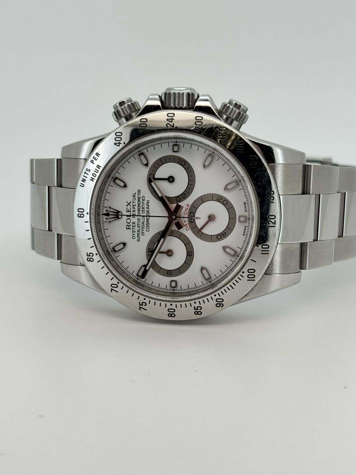 Marca Rolex Modello (Orologio) Daytona Numero di referenza 116520 Carica Automatico Materiale della cassa Acciaio Materiale cinturino Acciaio Anno di produzione 2011 documenti originali Rolex, no box Service Rolex Carica Automatico Cassa Materiale della cassa Acciaio Diametro 40 mm Impermeabile 10 ATM Materiale lunetta Acciaio Vetro Vetro zaffiro Quadrante bianco APH Materiale cinturino Acciaio Colore cinturino Acciaio Chiusura Déployante Materiale chiusura Acciaio - COMMISSIONE D’ASTA 25%