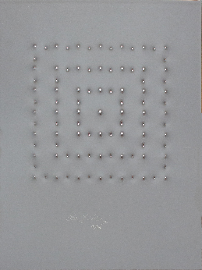 Enrico Castellani, Rilievi su lastra di alluminio, Multiplo n. 16/45, 31,5x23,5 cm, Senza titolo; Firmato e numerato in basso al centro