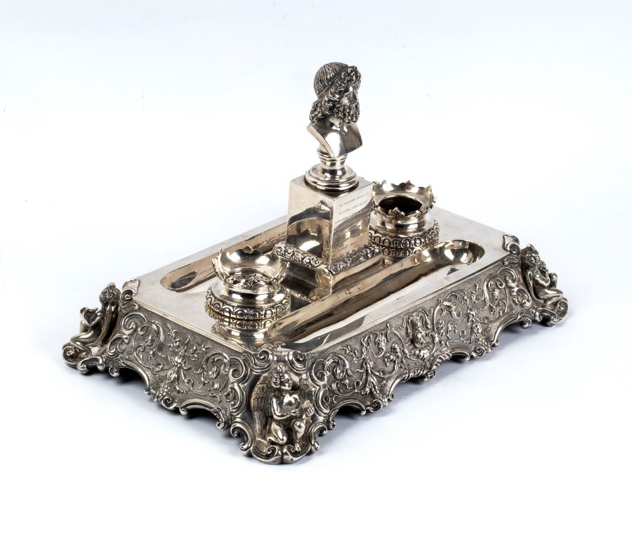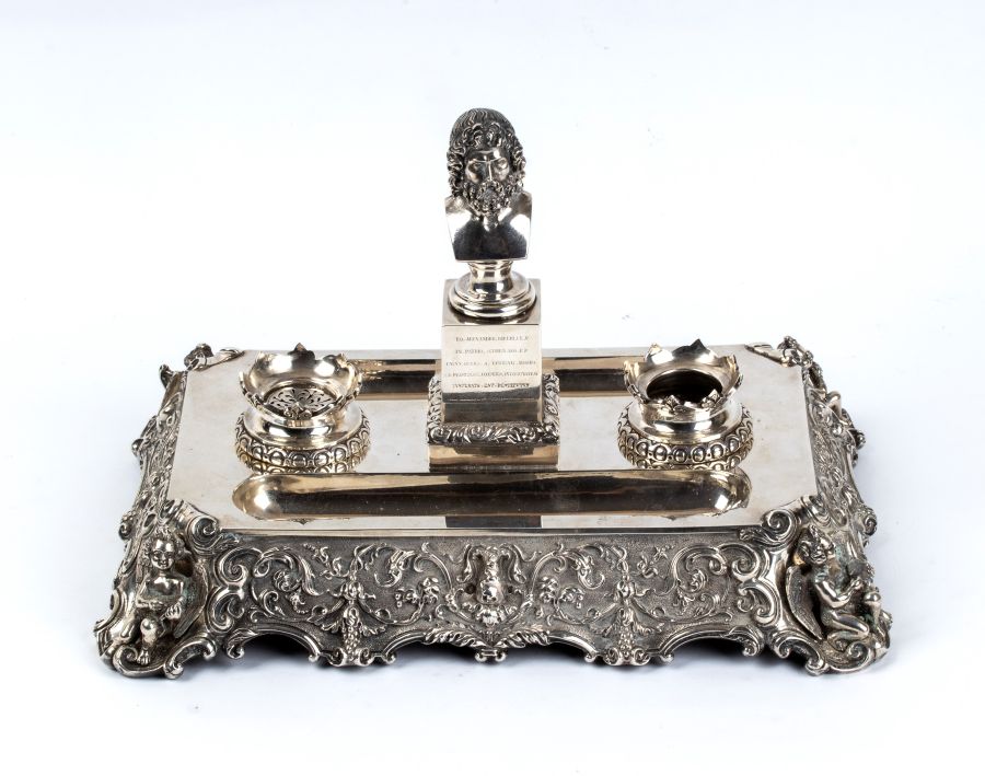 Calamaio italiano in argento con dedica ad Alessandro Riberi Torino, prima metà XIX secolo