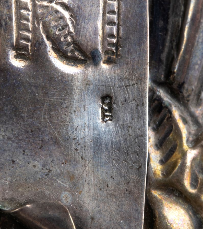 Punzonato con i marchi in uso a Napoli per l'argento al titolo di 834/1000, tra il 1839 e il 1872, per gli argenti realizzati a scopo di culto.