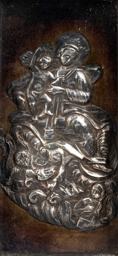 Placchetta italiana in argento raffigurante la Madonna con Bambino XIX secolo