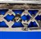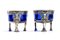 Altezza x diametro: 6,5 x 7,3 cm. Peso lordo complessivo: 105 gr. Peso netto: 40 gr circa. di forma circolare, decorate con elementi vegetali, pavoni ed elementi geometrici; poggiante su tre piedini a forma di vaso. Vetri blu non coevi.