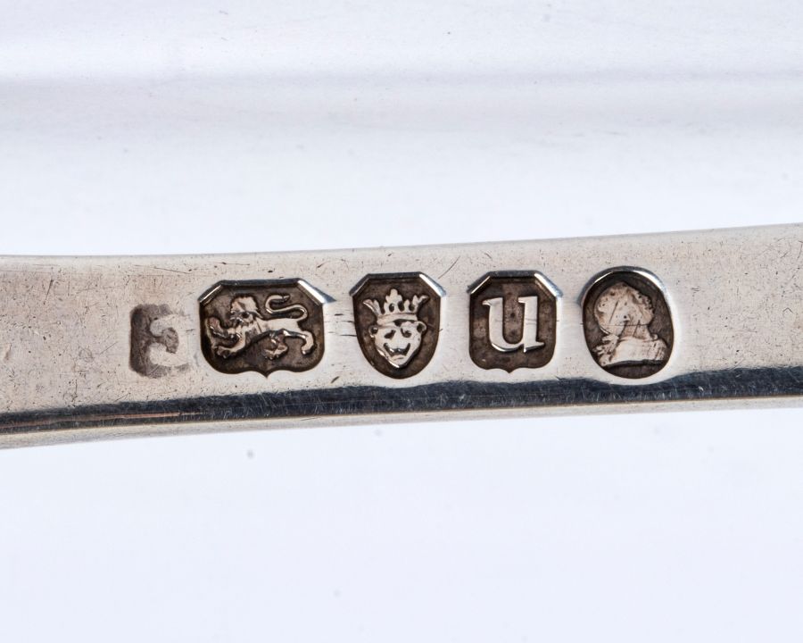 Argento 925/1000 con monogramma , serie completa di marchi Londra 1893-1894, argentiere non identificato.