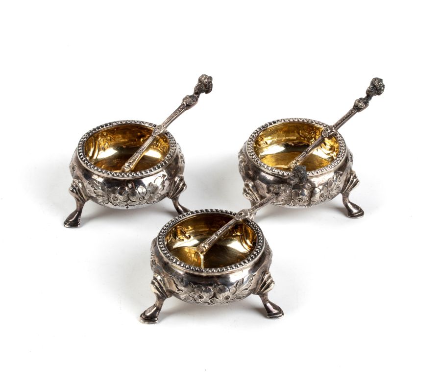 Lotto di 3 saliere vittoriane inglesi in argento Londra, 1867