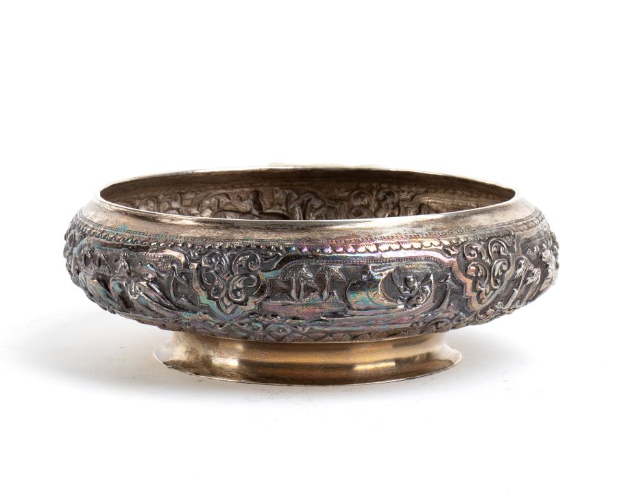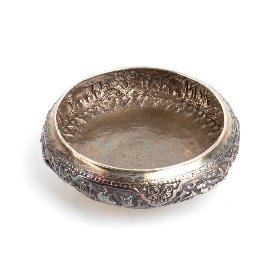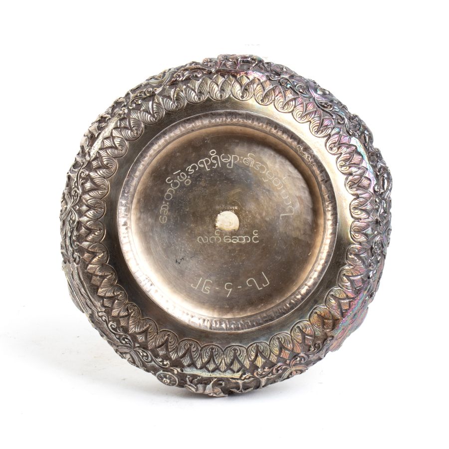 Ciotola Thabeik birmana in argento XIX secolo Altezza x diametro: 18 x 18 cm....