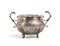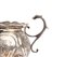 Altezza x larghezza x profondità: 10x15x10 cm. Peso: 242 gr. di forma circolare, sorretta da quattro piedini a forma di zampa felina, riccamente ornati. Il corpo, bombato nella parte centrale, si assottiglia verso l’alto terminando in un collo stretto e un orlo svasato e sagomato. Ai lati si sviluppano due manici scolpiti a forma di animali, impreziositi da volute decorative. L’intera superficie è finemente incisa a bulino, con un ricco decoro di volute fogliate ed elementi floreali.