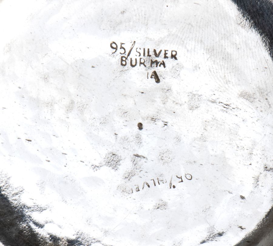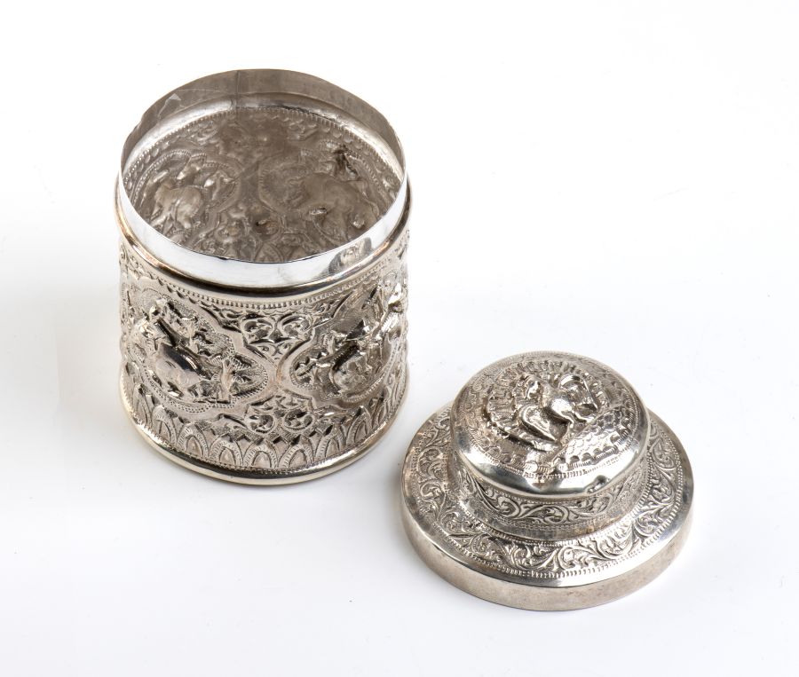 Contenitore birmano per tè in argento XIX secolo Peso: 150 gr. L'esterno con...