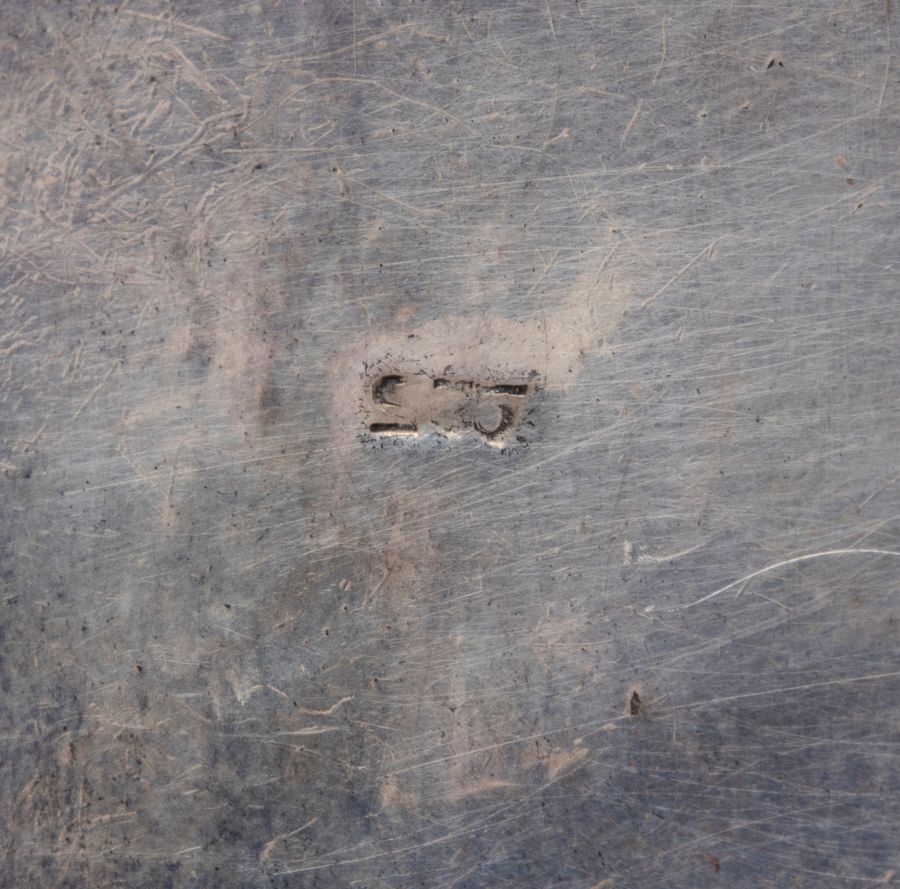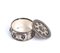 Altezza x diametro: 2x5,5 cm. Peso: 78 gr. di forma rotonda con coperchio ad innesto. Il corpo è ornato da delicati motivi a rilievo, eseguiti con una fine punteggiatura che compone fiorellini stilizzati.