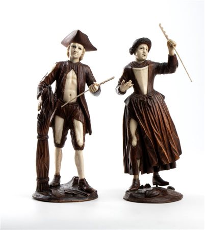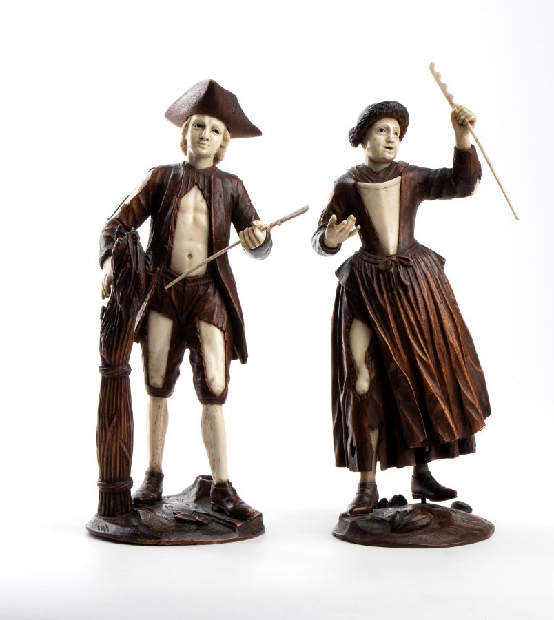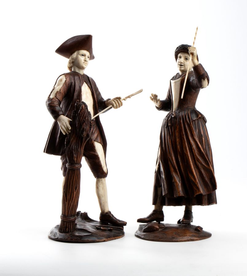 Coppia di sculture tedesche in legno e osso Fine XVIII, inizio XIX secolo